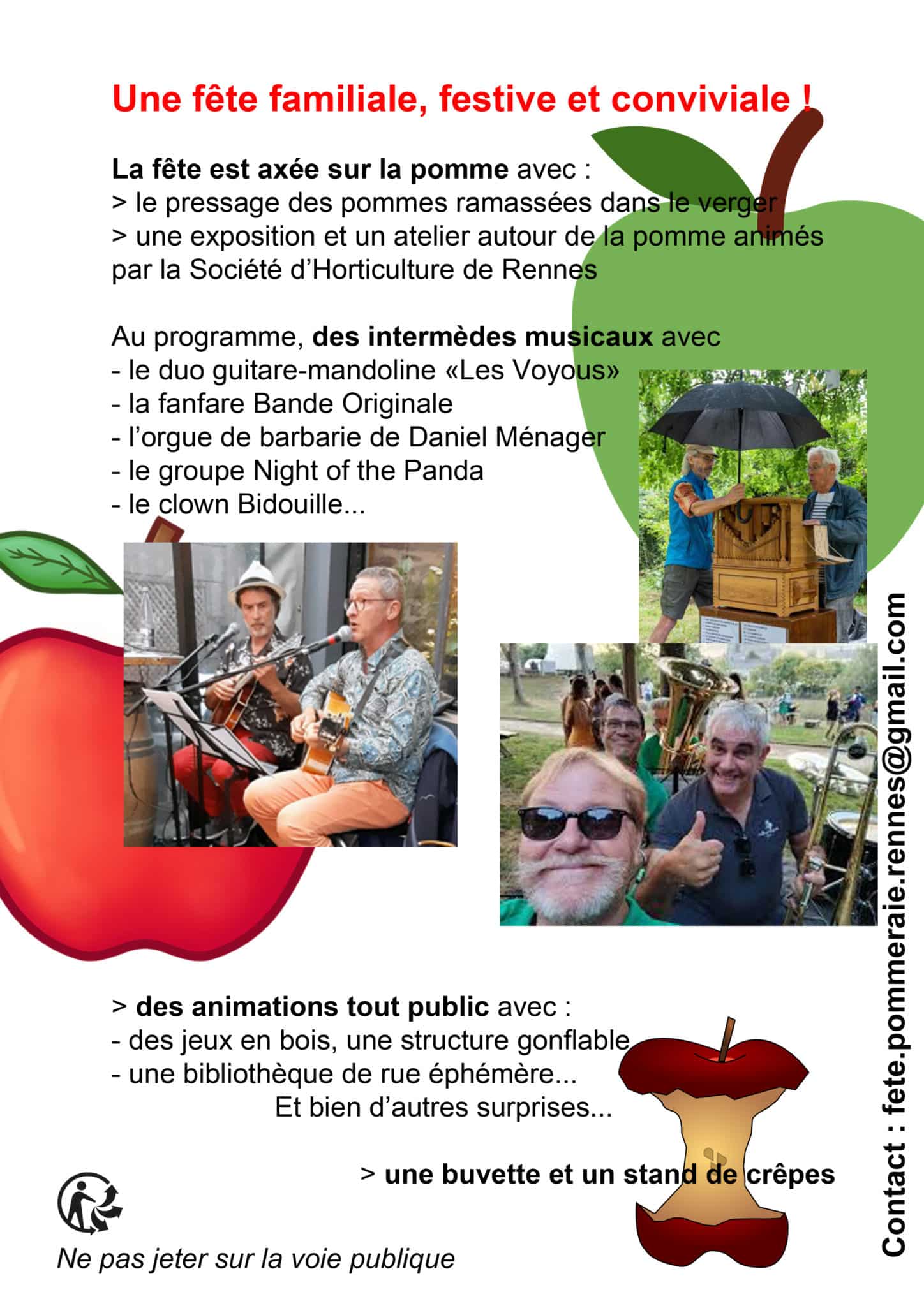 La fête de notre quartier, qui alterne tous les deux ans, avec la Ballade avec Brassens, change une nouvelle fois de nom. D’abord dénommée La Fête de la Pomme, puis La Fête des Bricoles, elle réintègre le parc du Landry et prend le nom de La Fête de la Pommeraie.